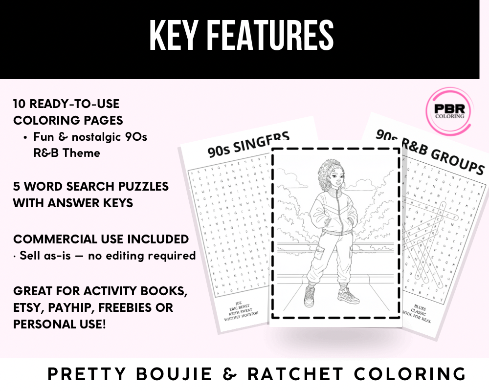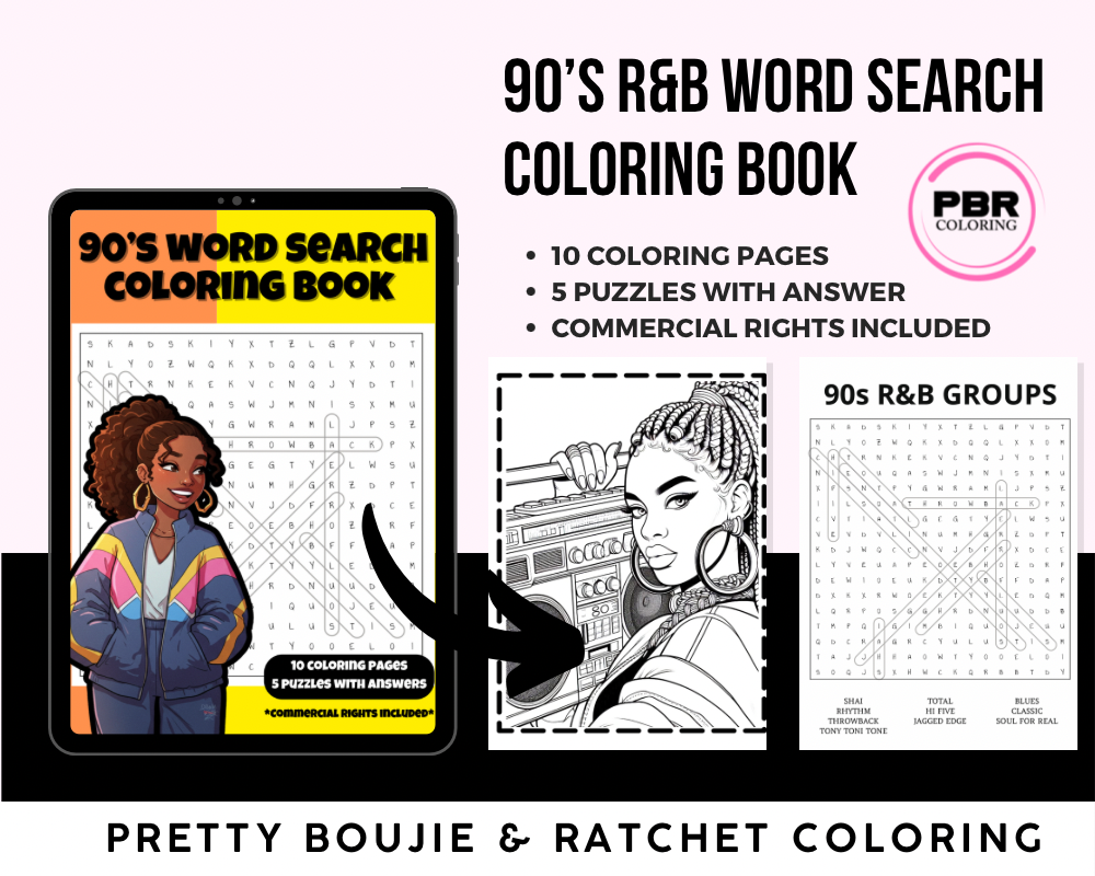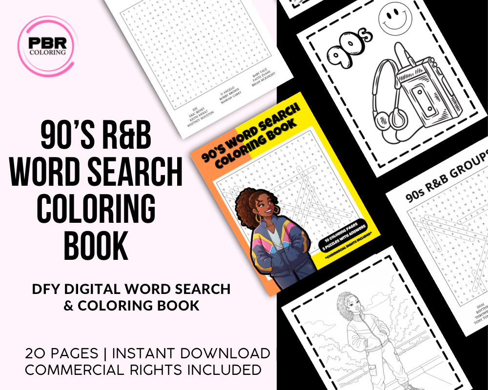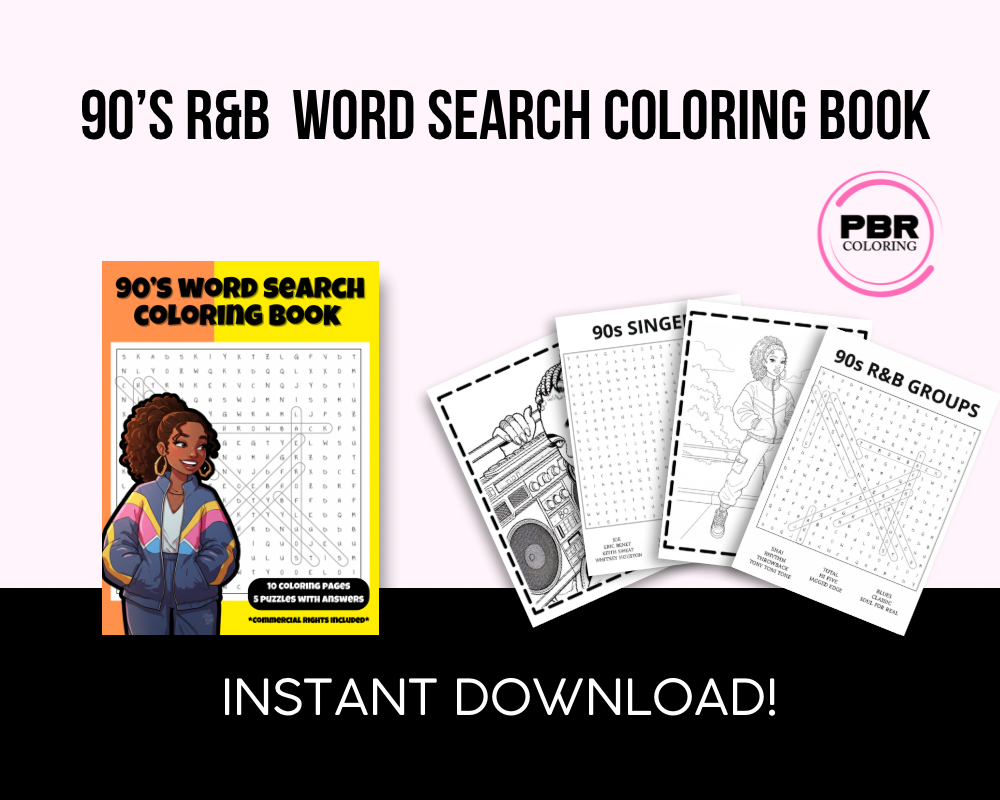 Bring the 90s vibes with this printable word search & coloring book combo designed for creators, educators, and small business owners! This ready-to-sell digital pack includes 10 melanin-rich coloring pages + 5 fun, nostalgic word search puzzles featuring your favorite 90s R&B artists and girl groups.
