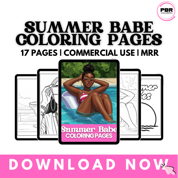 Summer Babe Coloring Pages | MRR | Commercial Use